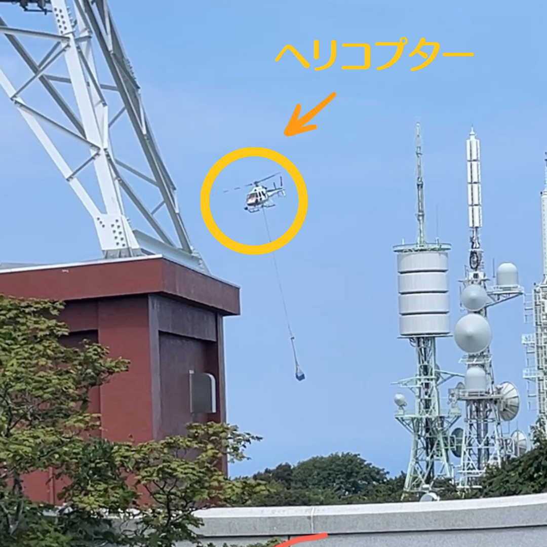 途中、山頂にヘリコプターで資材を運んでいる様子に遭遇。